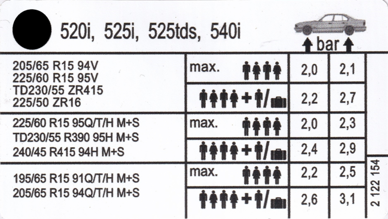 Sticker tyre pressure 520i - 525i - 525tds - 540i (Repro, New)